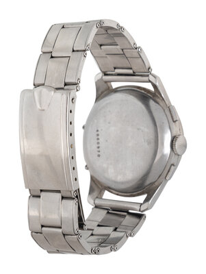 Stamps: Inner case back: ACIER INOXYDABLE DOXA SA MADE IN SWITZERLAND. Movement: DOXA SA. Clasp: CROMWELL U.S.A. Case back: 4860970.