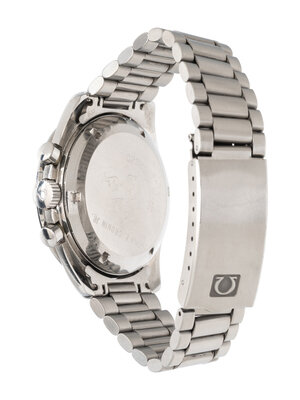 Stamps: Case back: SPEEDMASTER. Bracelet: 633 32 STAINLESS STEEL 1171/1 (maker's mark) OMEGA. Case interior: (maker's mark) FAB. SUISSE SWISS MADE ACIER INOXYDABLE S 105 012-65. Movement: 24001474 SEVENTEEN 17 JEWELS 321.