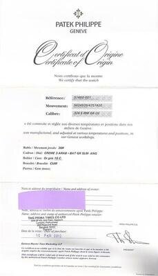 Sold with: Patek Philippe Certificate of Origin, three booklets, and leather fold