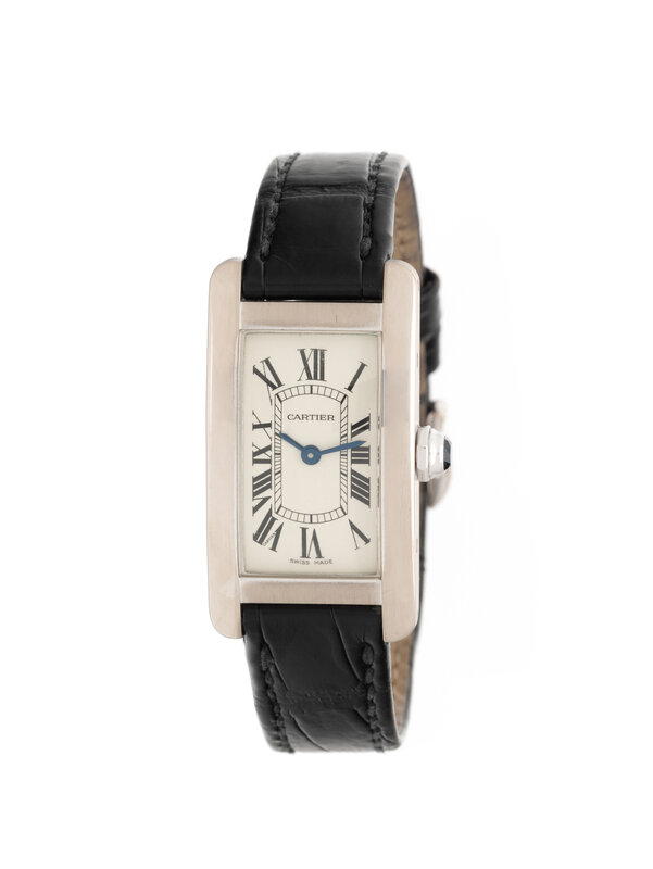 CARTIER, 18K WHITE GOLD 'TANK AMÉRICAINE WATCH, BOX & PAPERS