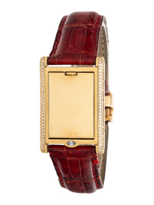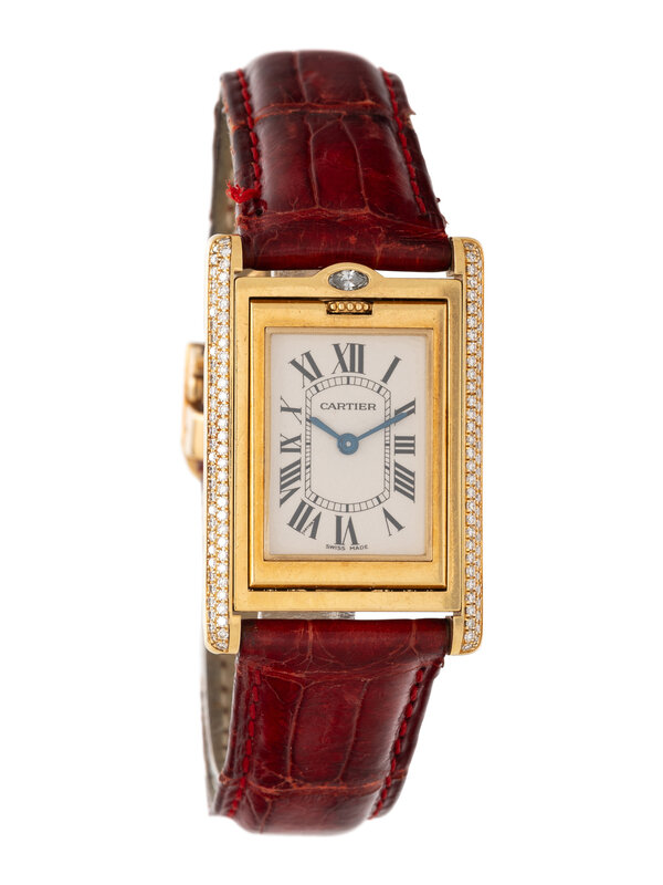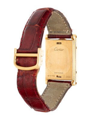 Bracelet/Strap: Red leather signed Cartier with 18K yellow gold Cartier deployant clasp