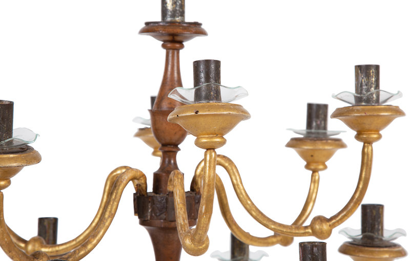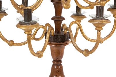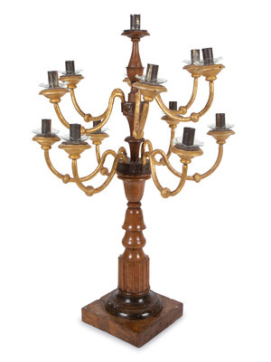 An Italian Parcel-Gilt Carved Fruitwood Thirteen-Light Candelabrum