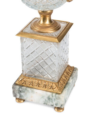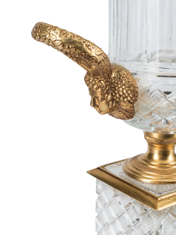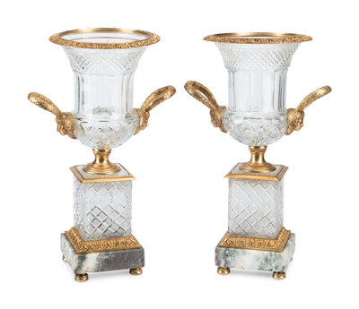 A Pair of French Gilt Bronze Mounted Cut Glass Urns