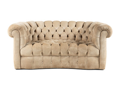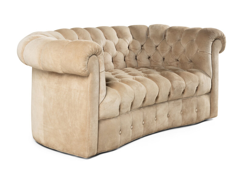 A Contemporary Suede-Upholstered Button-Tufted Chesterfield Sofa