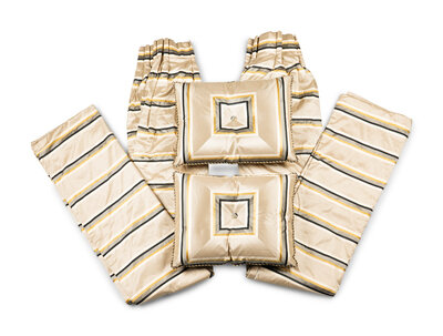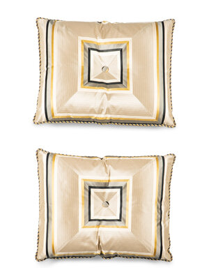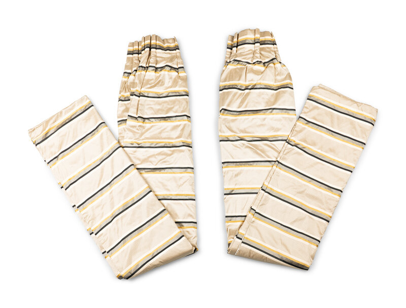 A Pair of Noblis Silk Upholstered Custom Throw Pillows and a Pair of Custom Curtain Panels