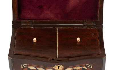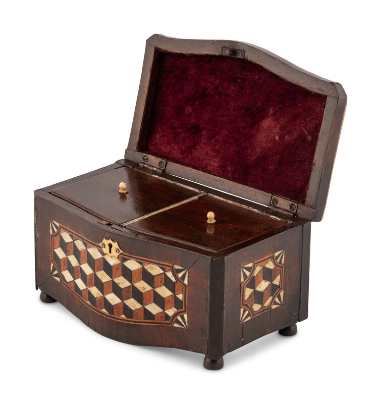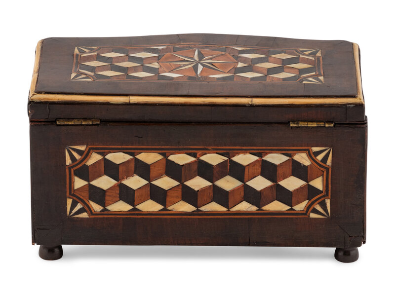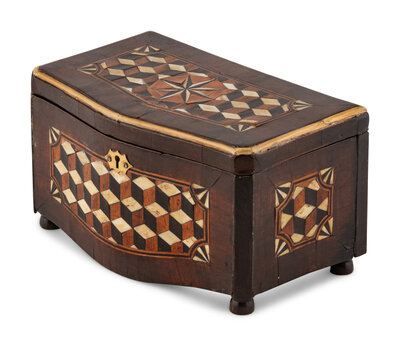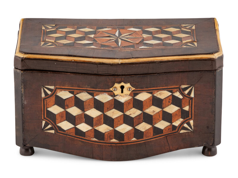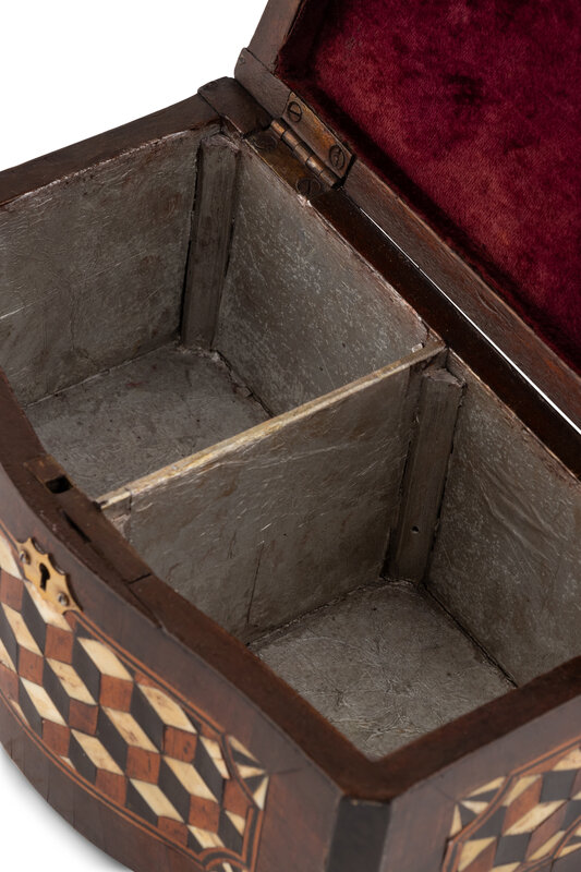 An Italian Walnut and Ebony Parquetry Tea Caddy