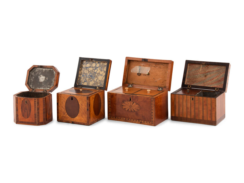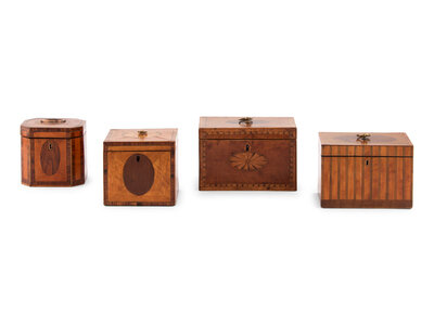 A Group of Four English Parquetry Tea Caddies