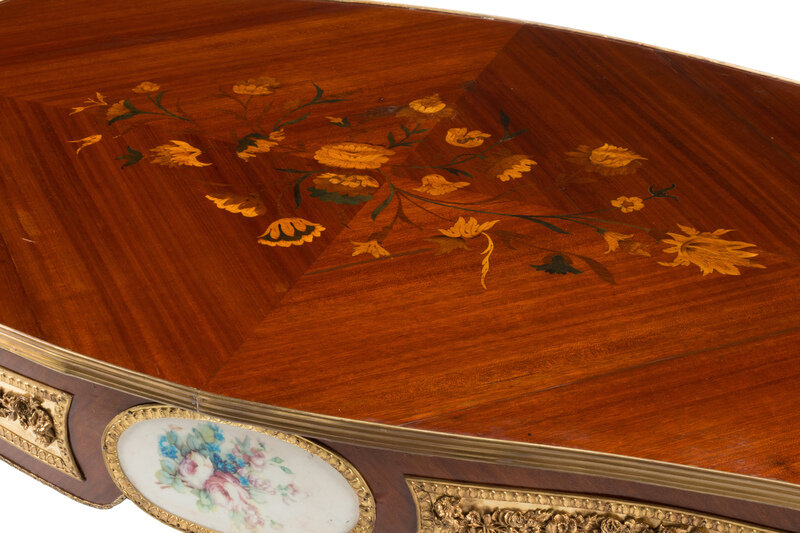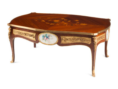 A Louis XV Style Gilt Bronze and Porcelain Mounted Low Table