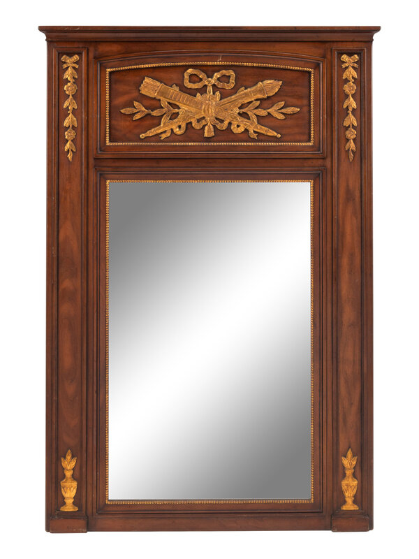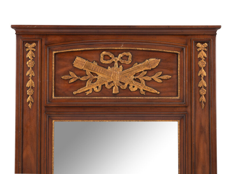 A Louis XVI Style Parcel Gilt Trumeau Mirror