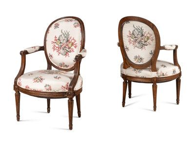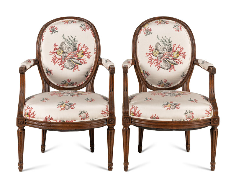 A Pair of Louis XVI Walnut Fauteuils