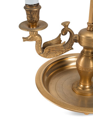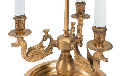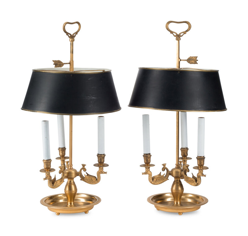 A Pair of French Gilt Metal and Tole Bouillotte Lamps
