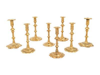 A Group of Eight English Brass Candlesticks