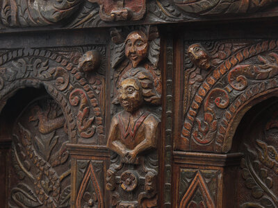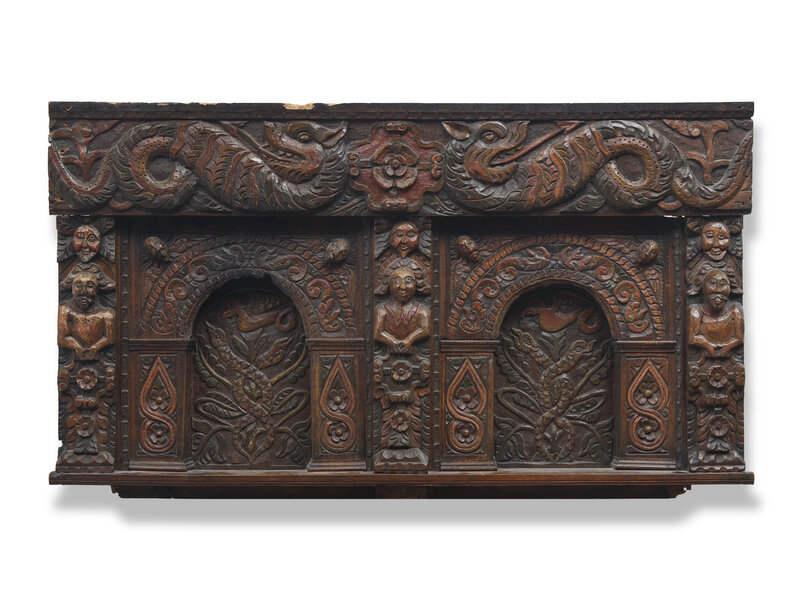 A Charles II Carved Oak and Polychrome Decorated Panel
