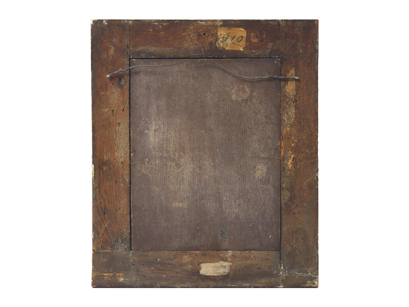 with some remnants of decoupaged figures and elements.