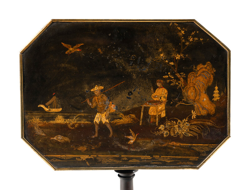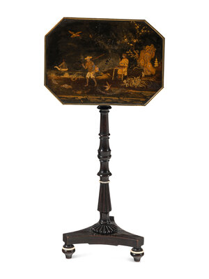 A Regency Black and Gilt-Japanned Tilt-Top Tea Table