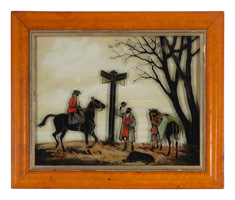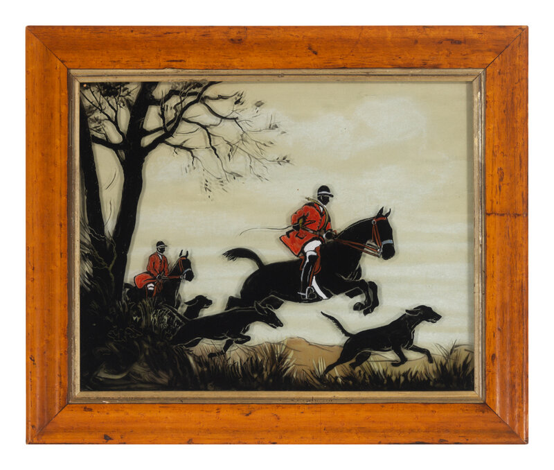 A Pair of English Reverse-Painted Glass Panels