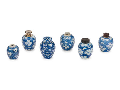 A Collection of Six 'Hawthorne' Pattern Porcelain Jars