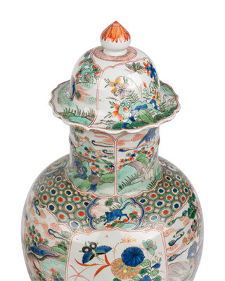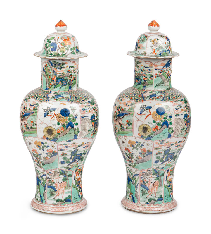A Pair of Chinese Export Famille Verte Porcelain Vases and Covers