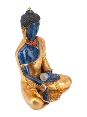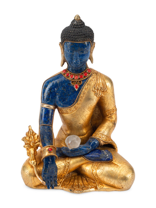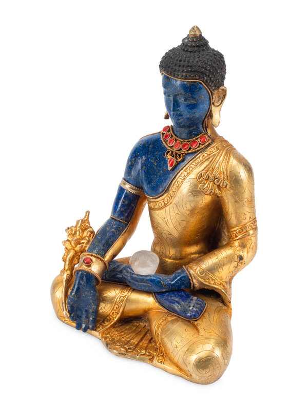 A Tibetan Style Gilt Bronze and Lapis Lazuli Seated Deity