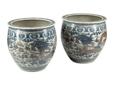 A Pair of Large Chinese Blue and White Porcelain Fish Bowls
