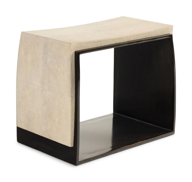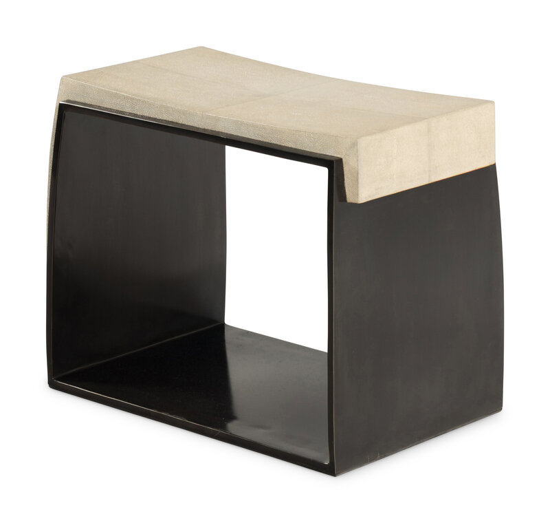 An R&Y Augousti Patinated Brass and Shagreen-Upholstered Laurens Stool