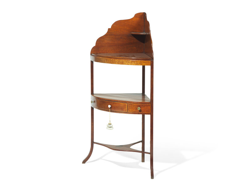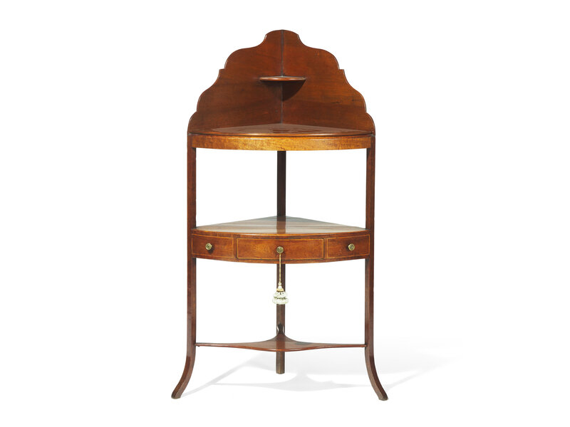 the top with later removable mahogany surface, which fits over surface with cut holes for wash bowls.