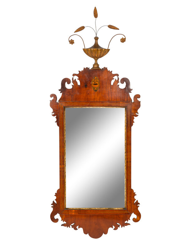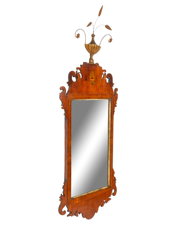 A Federal Parcel-Gilt Mahogany and Marquetry Looking Glass