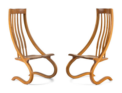 A Pair of Studio Craft Various Woods Side Chairs