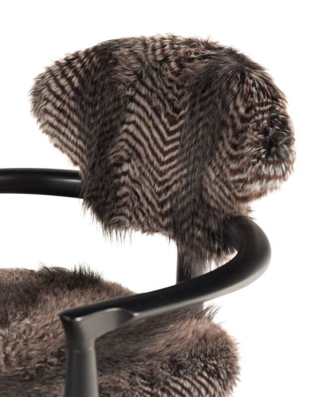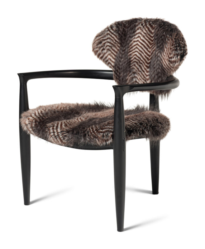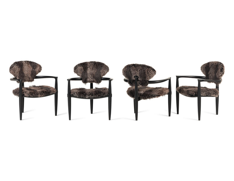 A Set of Four Faux Fur-Upholstered Ebonized Armchairs