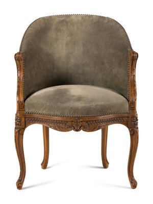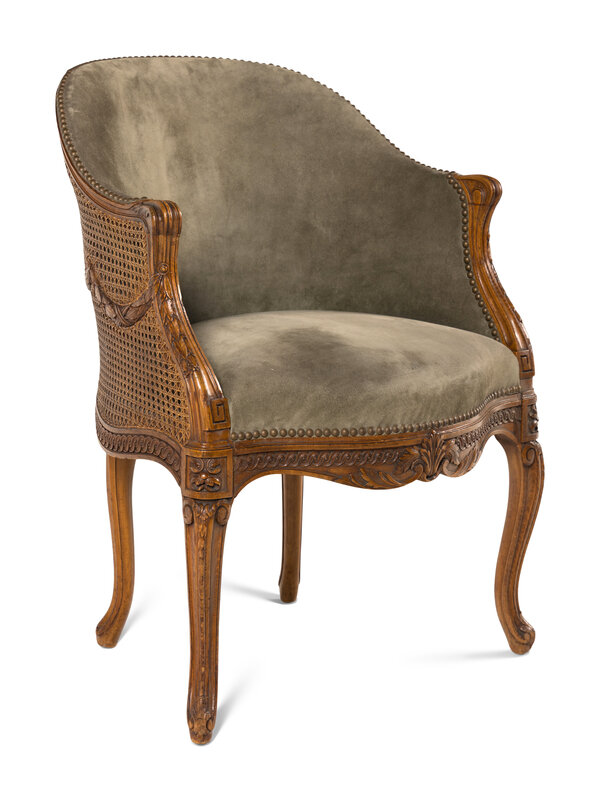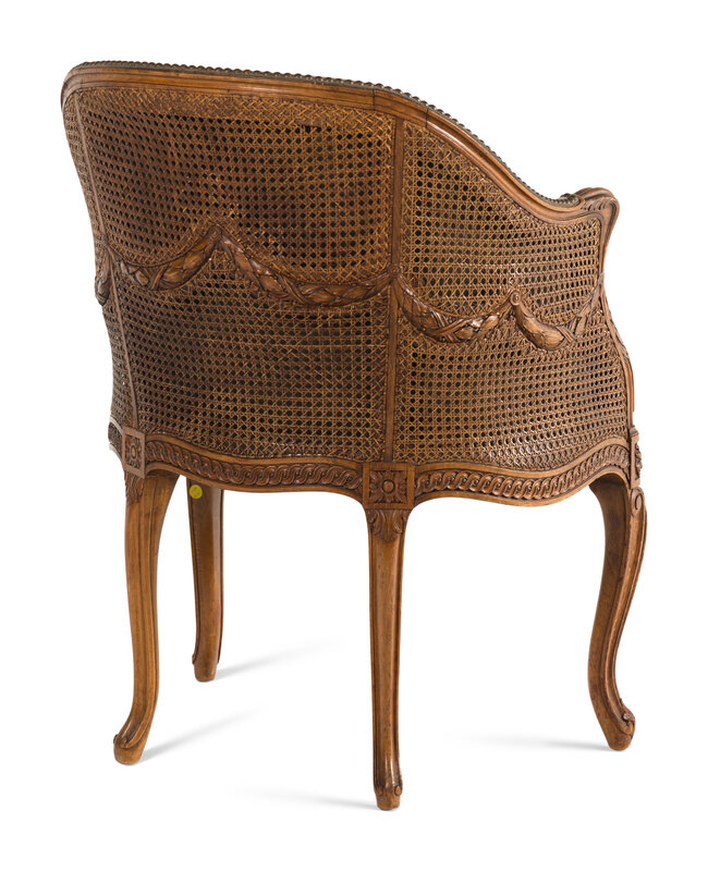 A Louis XVI Style Carved Beechwood and Caned Bergère