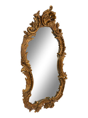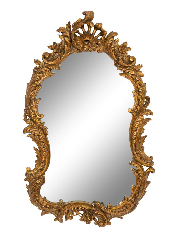 An Italian Rococo Style Giltwood Cartouche-Form Mirror