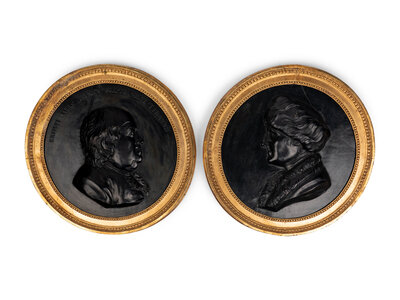 A Pair of Continental Cast Plaster Portrait Plaques of Benjamin Franklin and Thomas