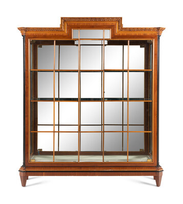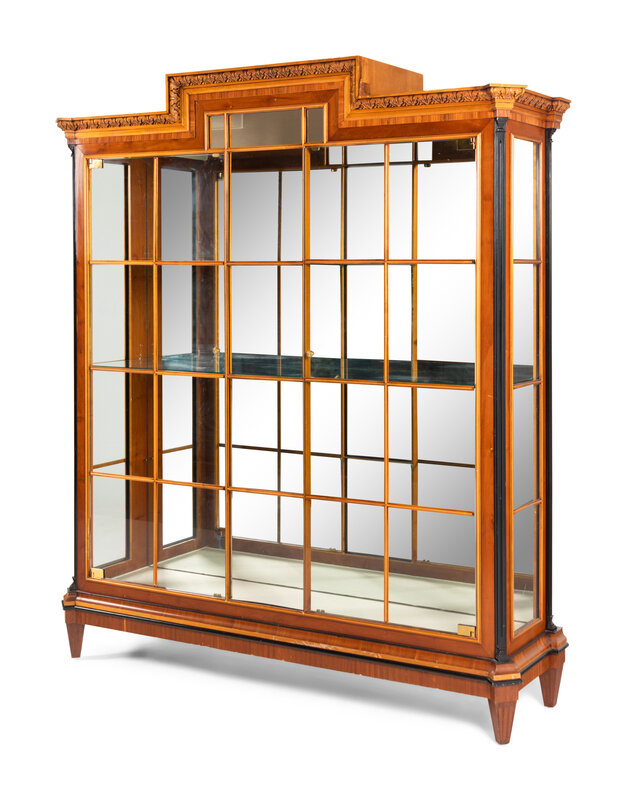 A Biedermeier Style Part-Ebonized Walnut Vitrine Cabinet