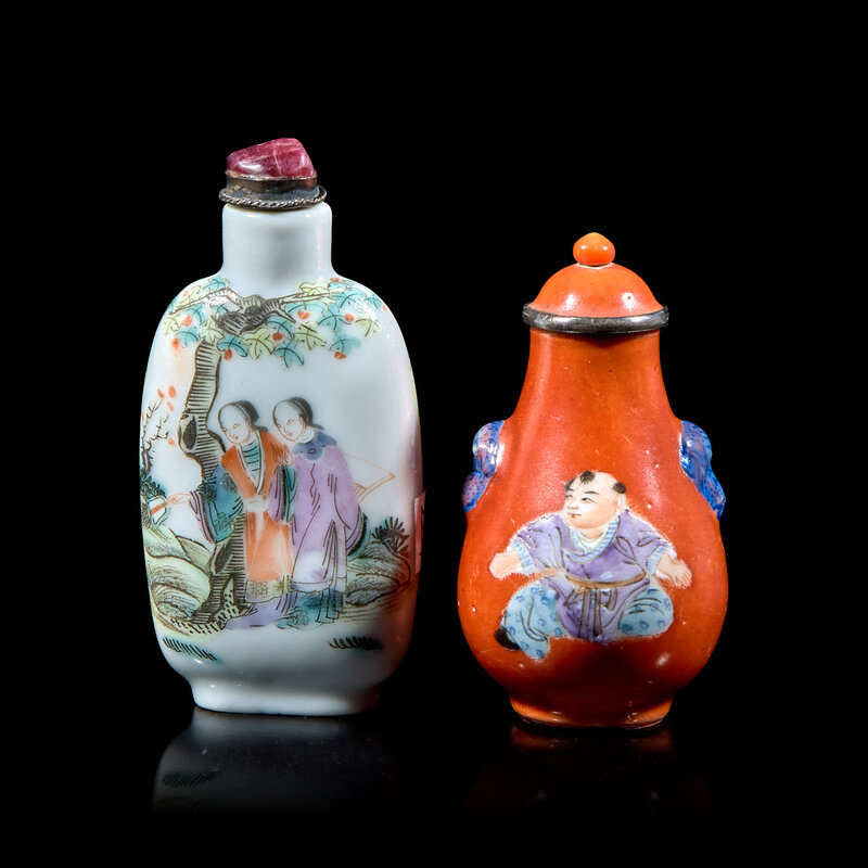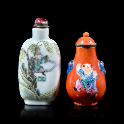 Two Chinese Famille Rose Porcelain Snuff Bottles