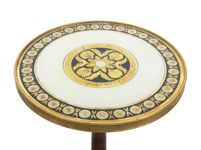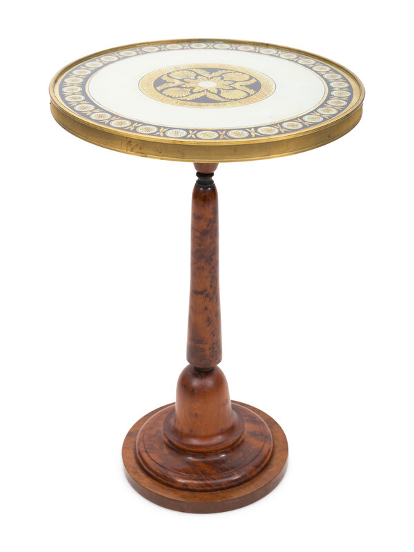 A Verre Eglomisé and Burl Walnut Pedestal Side Table