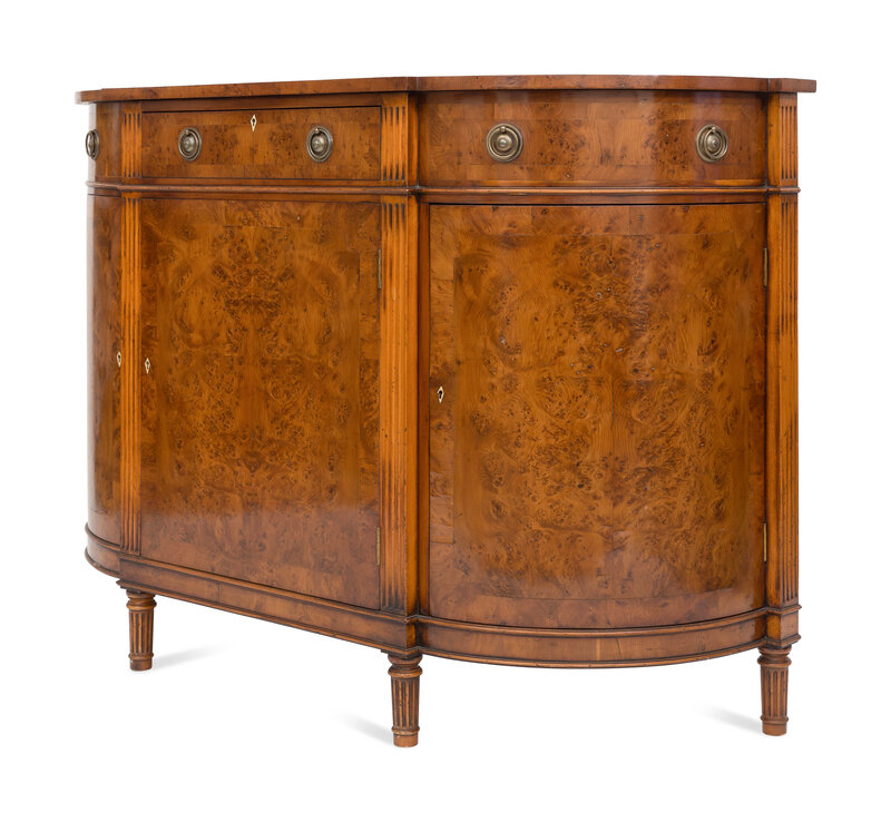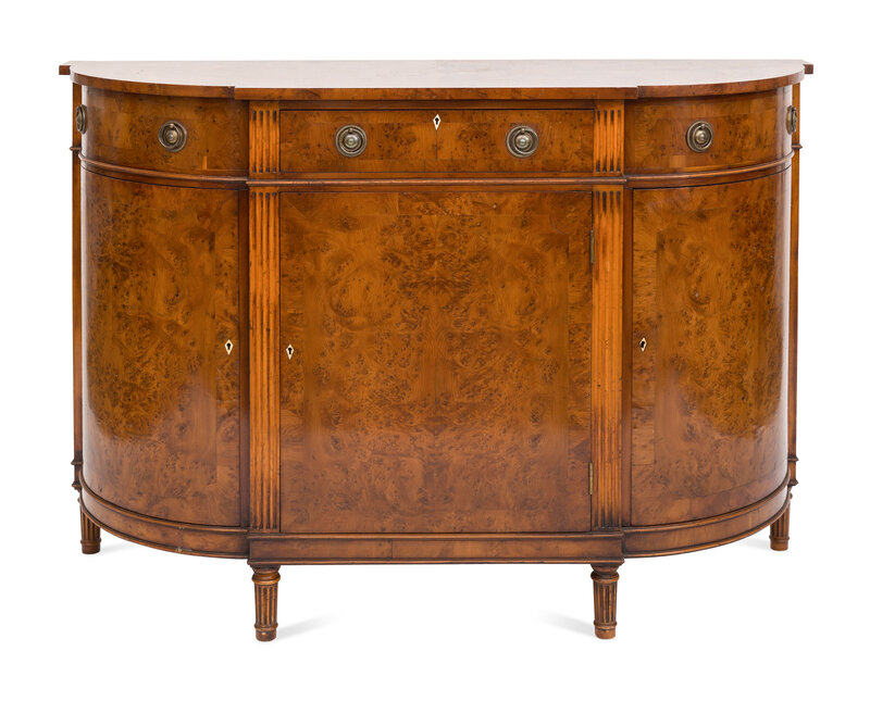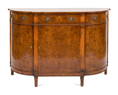 A Smith and Watson Regency Style Burl Walnut Demilune Credenza