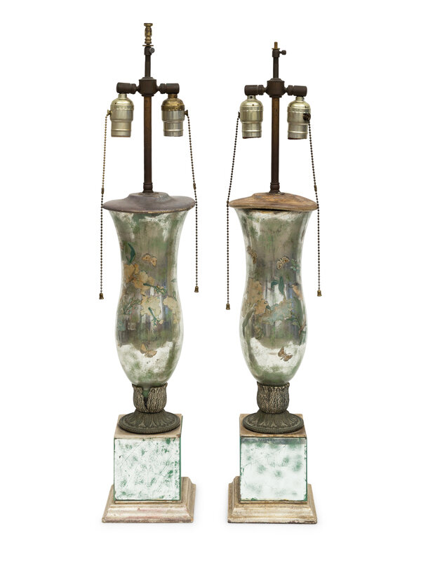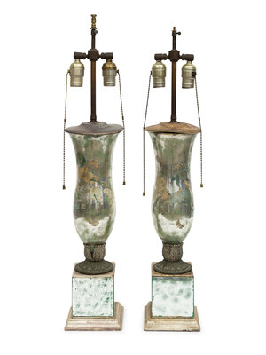 A Pair of French Urn-Form Verre Eglomise Table Lamps