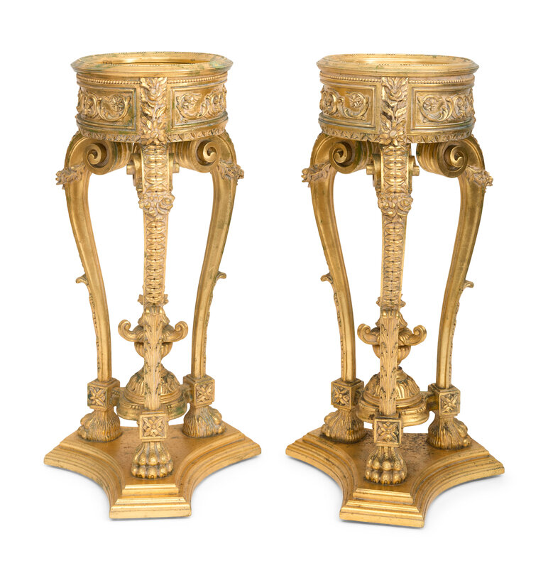 A Pair of Large Louis XV Style Giltwood Jardinière Stands