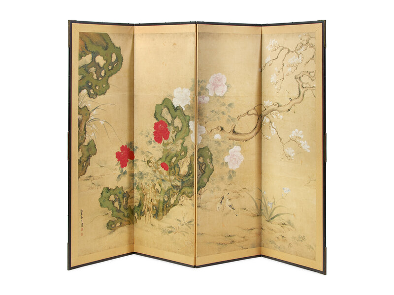 A Japanese "Flowers and Birds" Four-Panel Folding Screen