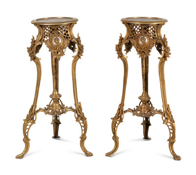 A Pair of Rococo Style Gilt Bronze Stands