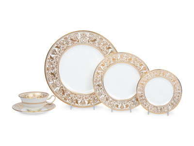 A Wedgwood Gold Florentine Porcelain Dinner Service