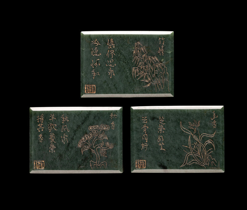 incised with bamboo, lingzhi and naricissus, softly polished.