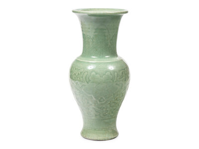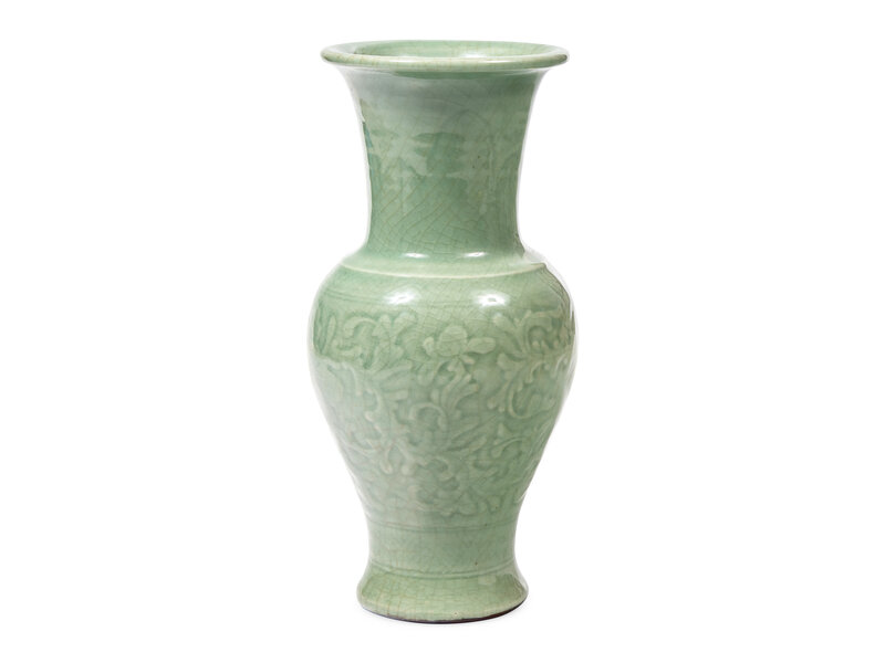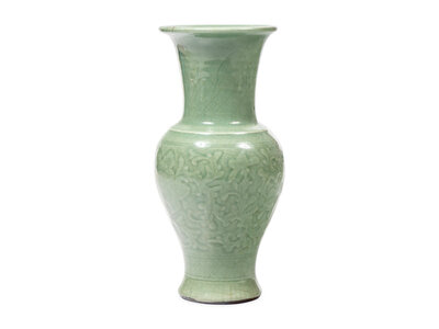 A Chinese Carved Celadon Glazed Vase, Probably Late 19th Century