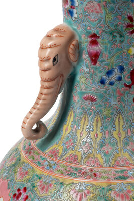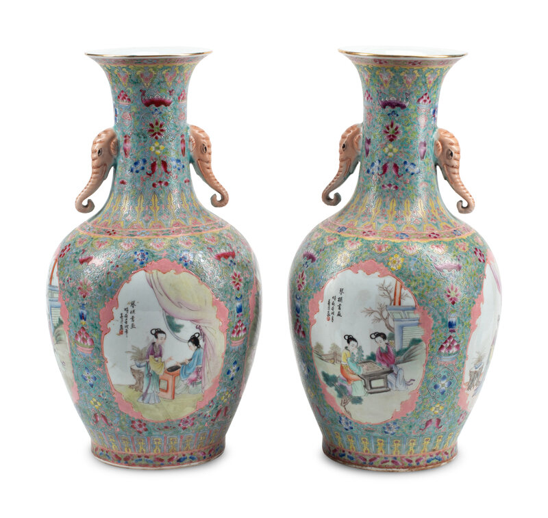 A Pair of Chinese Porcelain Vases with Elephant Handles