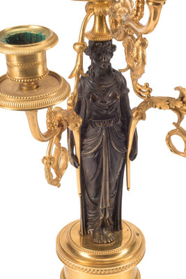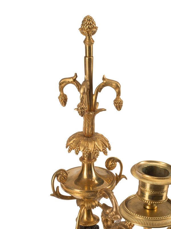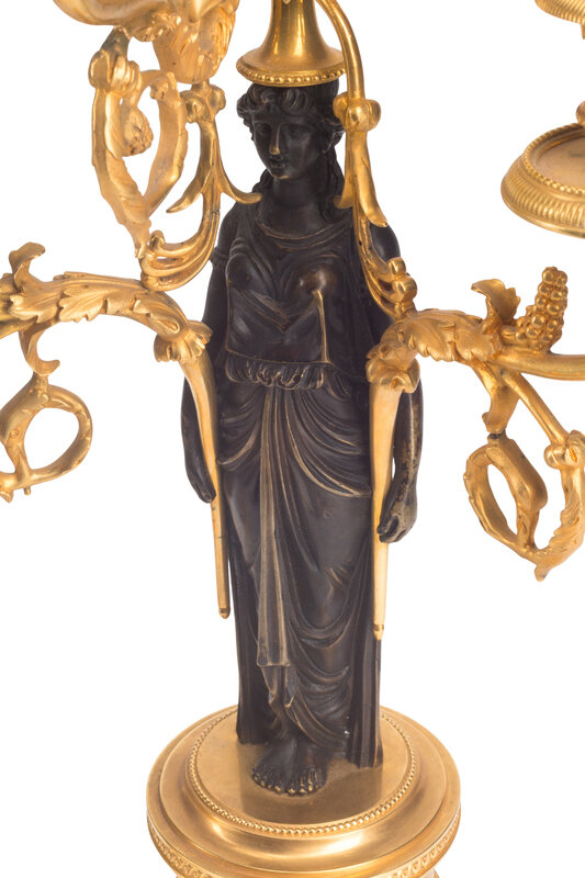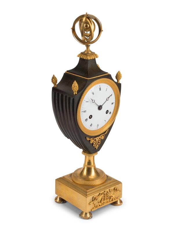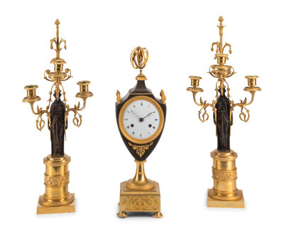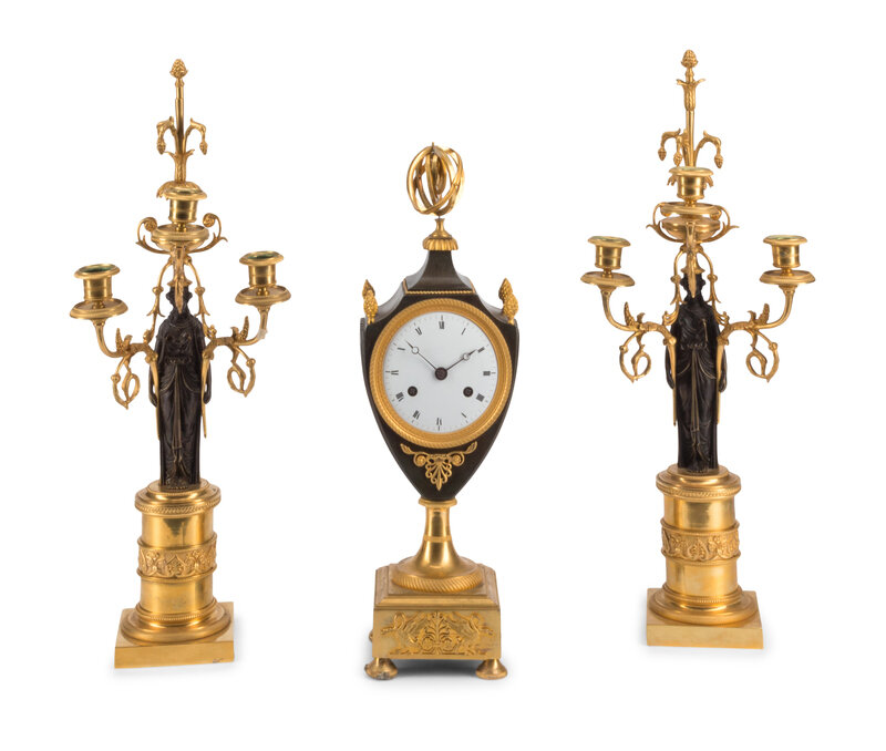 An Empire Gilt and Patinated Bronze Clock Garniture