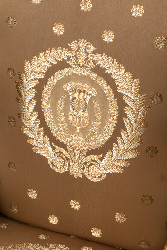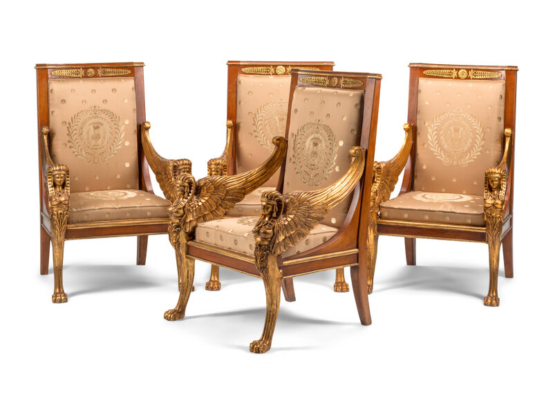 A Set of Four Italian Neoclassical Style Parcel Gilt Armchairs