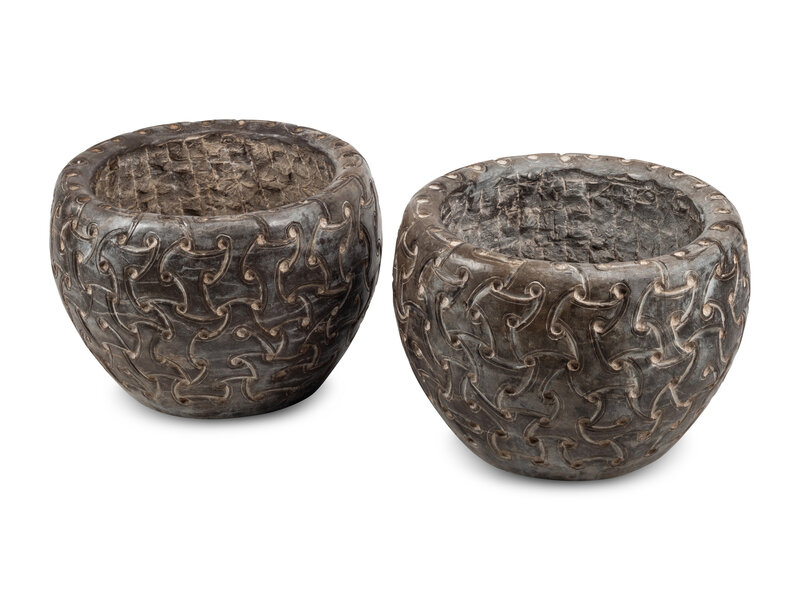 A Pair of Large Celtic Style Hand-Carved Marble Jardinières