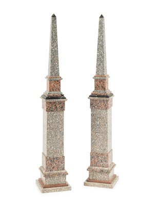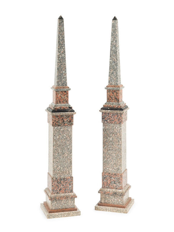 A Pair of Monumental Grand Tour Style Granite Obelisks