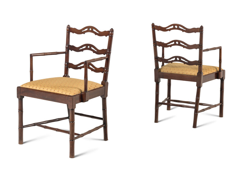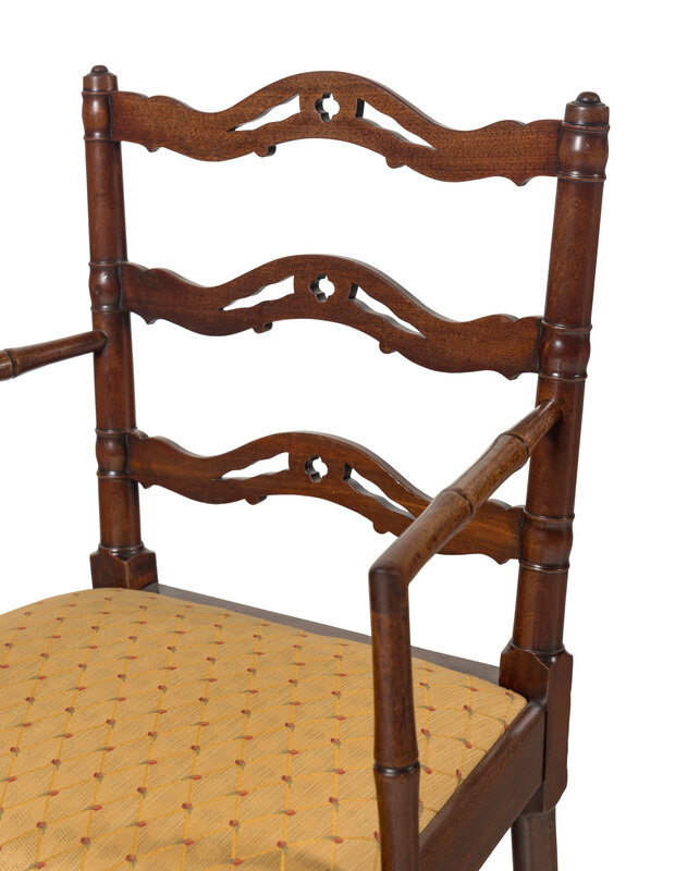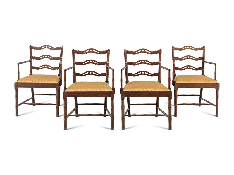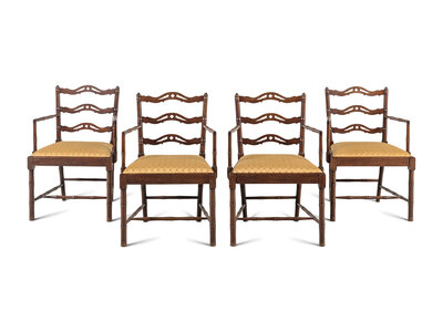 A Set of Four English Mahogany Faux-Bamboo Arm Chairs