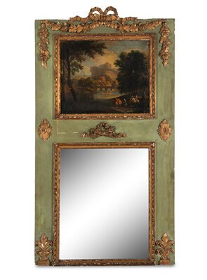 A French Painted and Parcel Gilt Trumeau Mirror